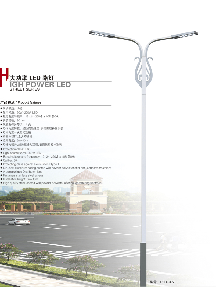 ● 燈桿為鋼件,經(jīng)熱鍍鋅處理后,表面聚脂粉體涂裝