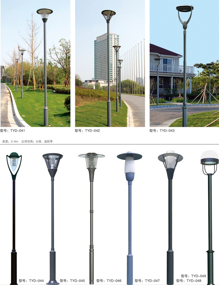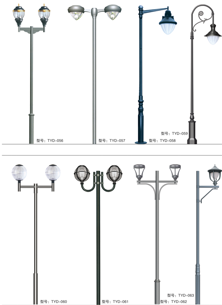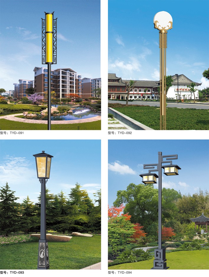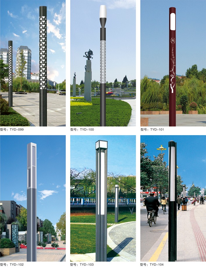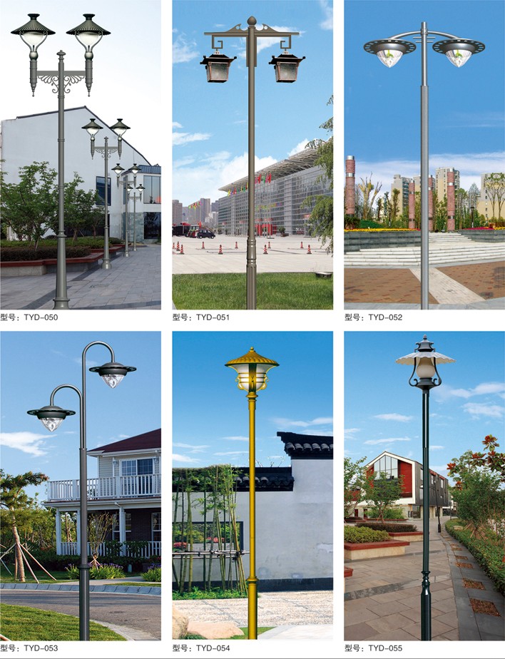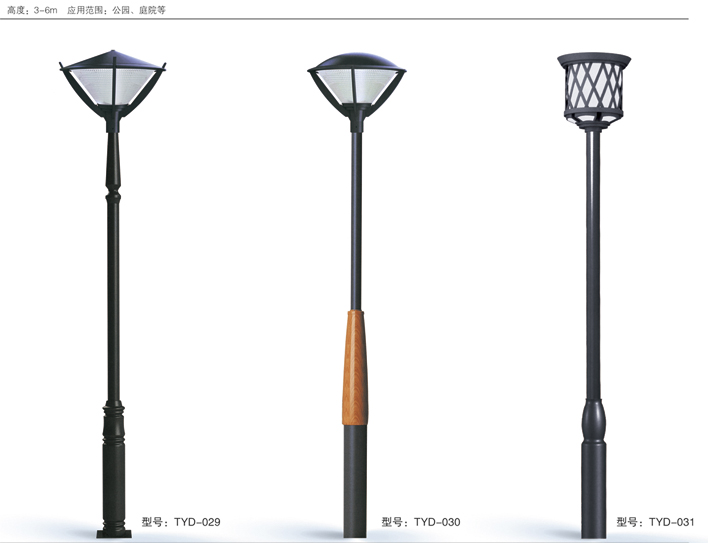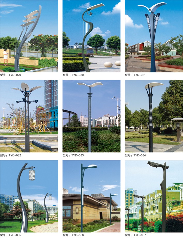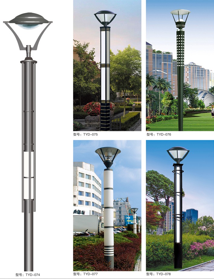 庭院燈系列燈飾照明是園林景區、文化休閑娛樂場所、步行街、商業街、住宅小區、行車道兩側等場所所普遍使用的裝飾及照明光源配置形式,是裝飾型照明燈飾產品。燈桿材質多樣,光源運用靈活多變,結構形態千姿百態,是美化、亮化,綠化的有機結合,光與影。燈與藝術的完美結合。